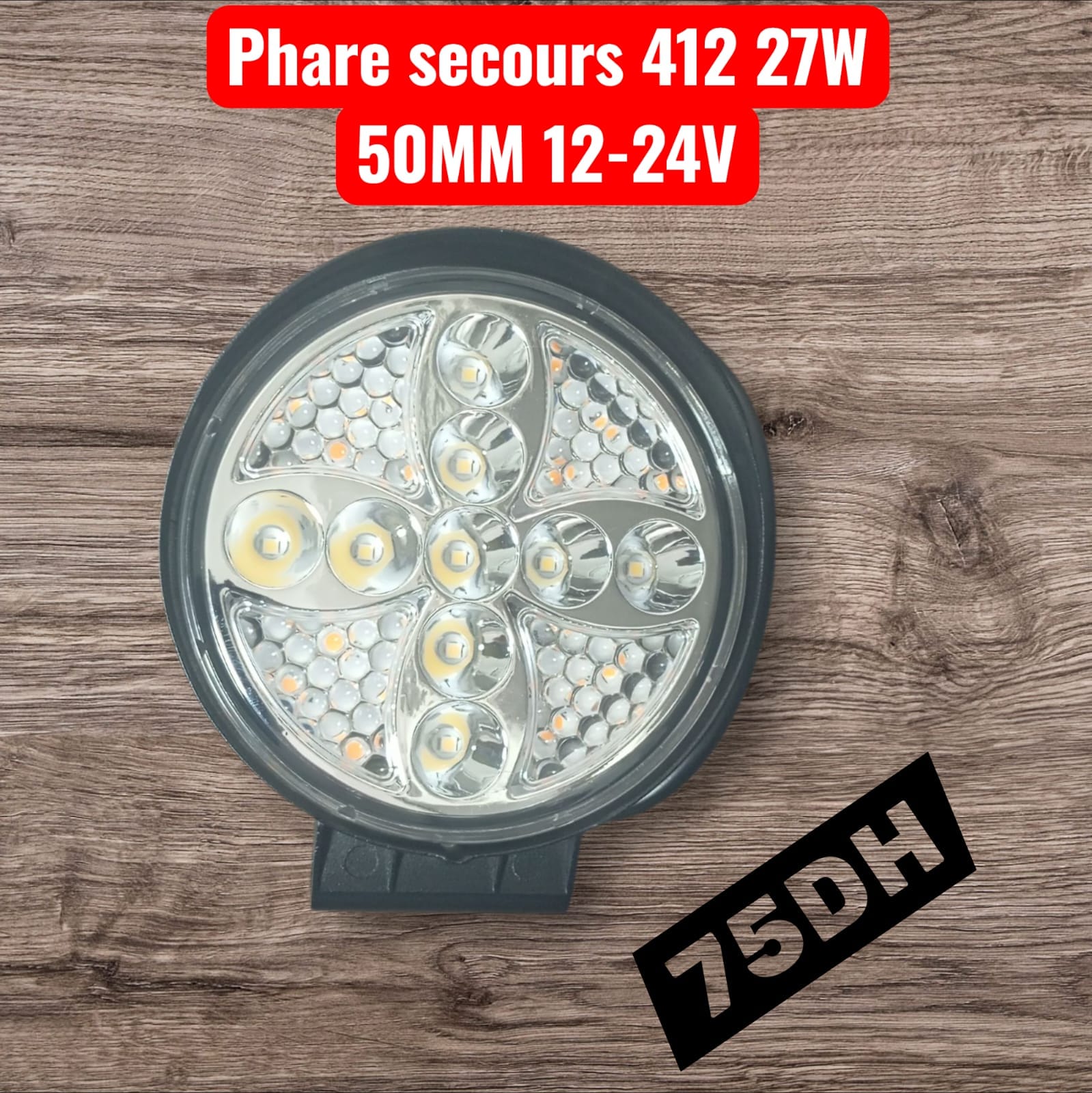 Phare de Secours LED Rond 412 – 27W Économique (12-24V)
